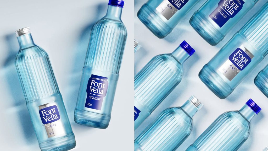 For brands whose differentiators are origin, purity, and trust—such as the Font Vella universe—we work with blue color palettes and watery visual codes, a sense of freshness and transparency, understated typography, and stable, clear, and reliable compositions.